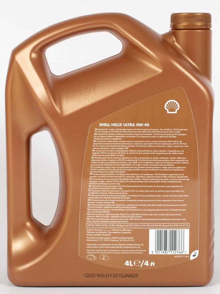 Shell Helix Ultra 0W-40 - Полностью синтетическое моторное масло для самых современных двигателей, созданное на основе уникальной технологии Shell PurePlus. Обеспечивает исключительную защиту и очищение даже при самых долгих рекомендованных автопроизводителями интервалах замены масла. Позволяет сохранить чистоту двигателя на уровне заводского конвейера. Защищает турбированные двигатели с непосредственным впрыском бензина от преждевременного самовоспламенения топливно-воздушной смеси (эффекта LSPI).