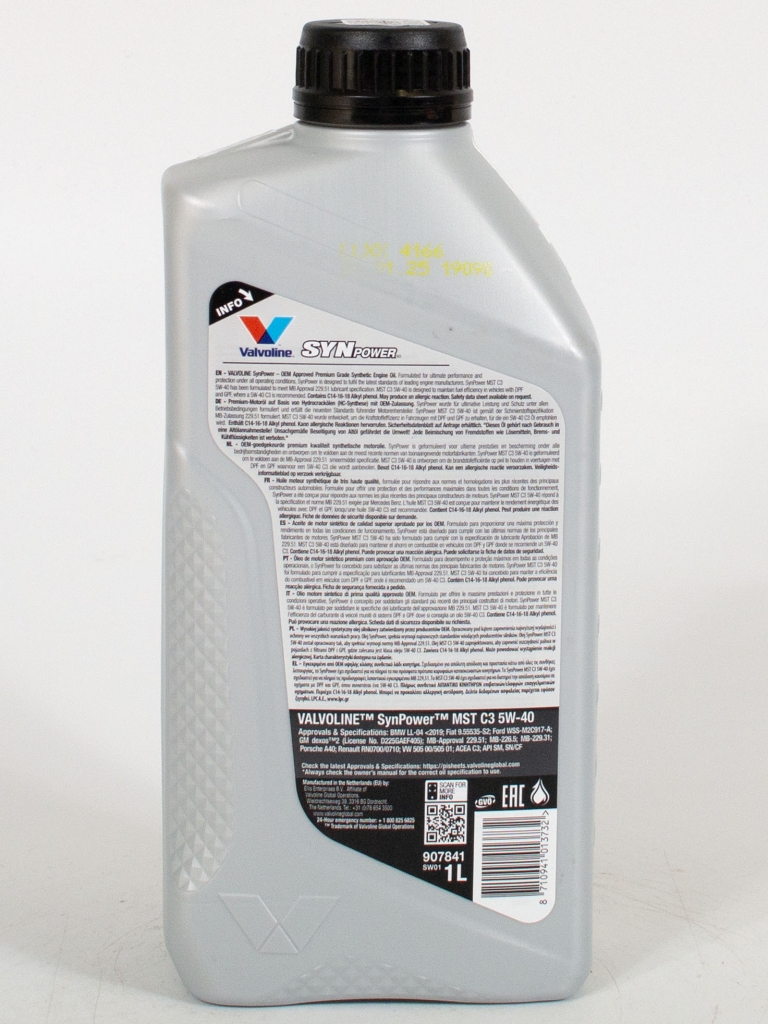 Главная / Моторные масла / Моторное масло Valvoline SYNPOWER MST C3 5W-40, 1л