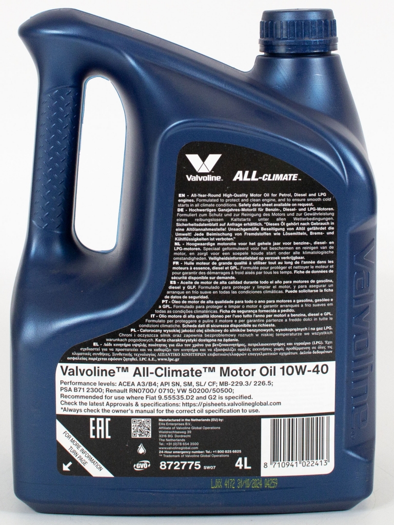 Главная / Моторные масла / Моторное масло Valvoline All Climate 10W-40, 4л