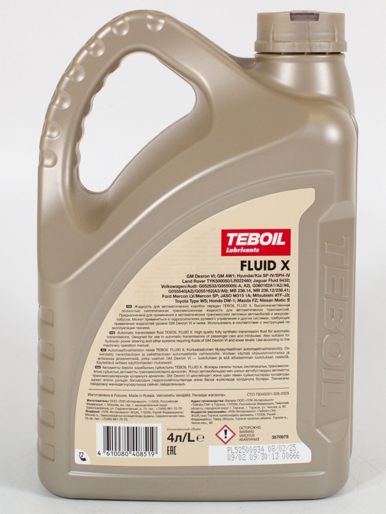Главная / Трансмиссионные масла / Трансмиссионное масло TEBOIL АКПП FLUID X, 4л
