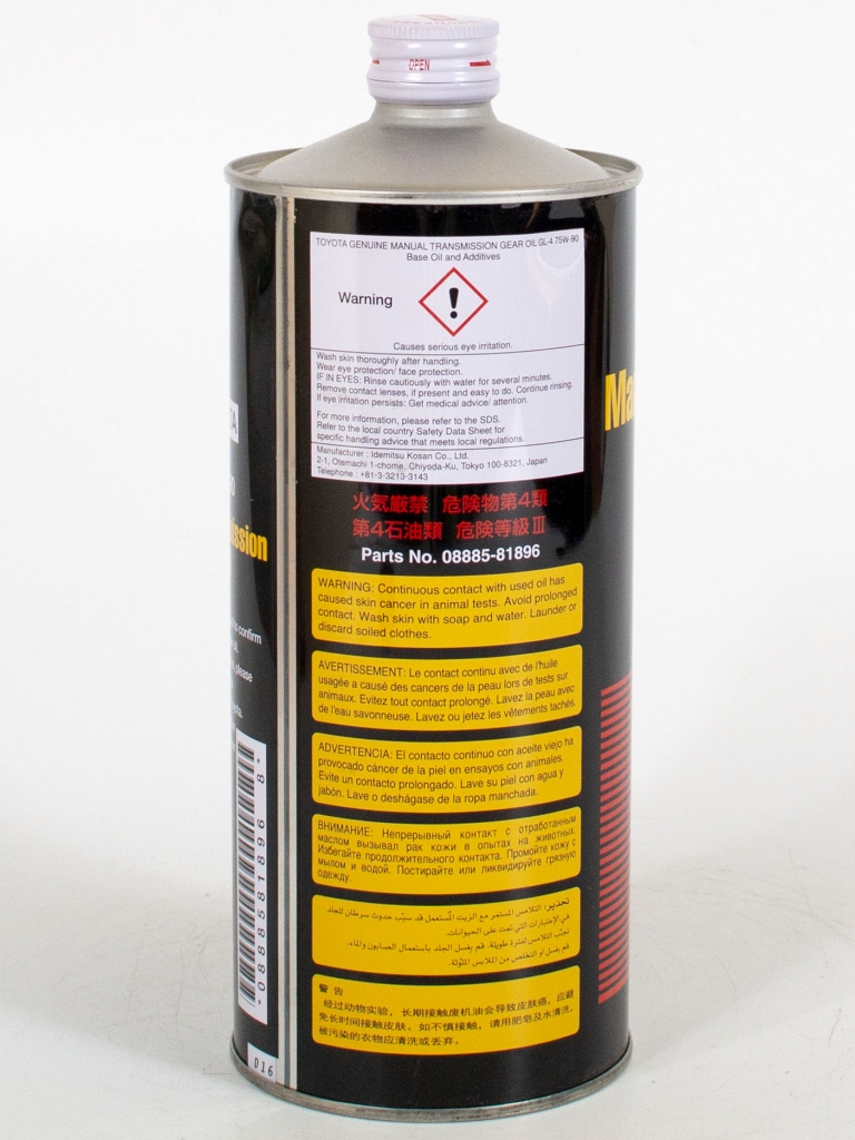 Трансмиссионное масло разработано и протестировано в условиях максимально приближенных к реальным. Соответствует классификации API GL-4. Может применяться в механических трансмиссиях автомобилей Toyota и Lexus.